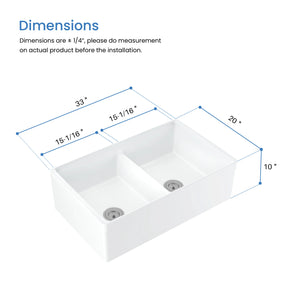 33″ Pure Fireclay Double Bowl Farmhouse Kitchen Workstation Sink – K2-DF33T