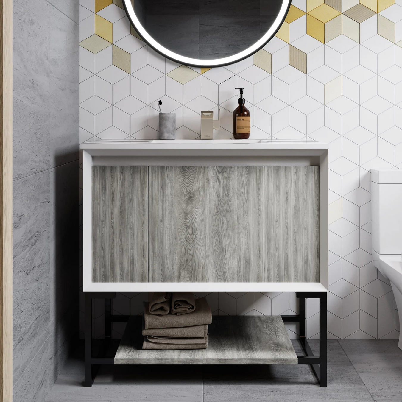 Vendor:RuvatiRuvati 19-inch Matte Gold and White Bathroom Vessel Sink epiStone Solid Surface – RVB2113GW