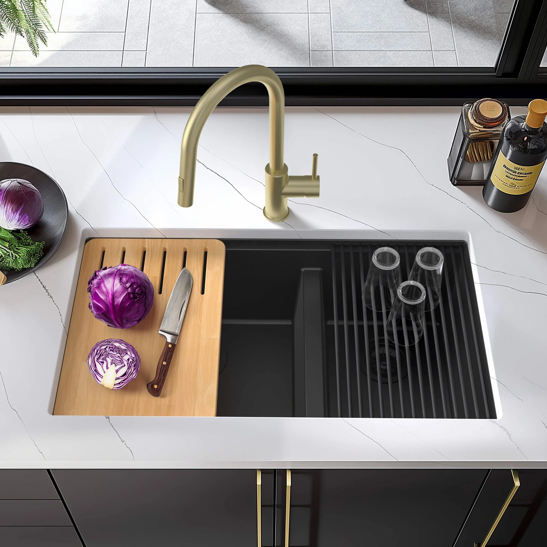 33″ Top-Mount Workstation Single Bowl Quartz Kitchen Sink – K4-TS33T