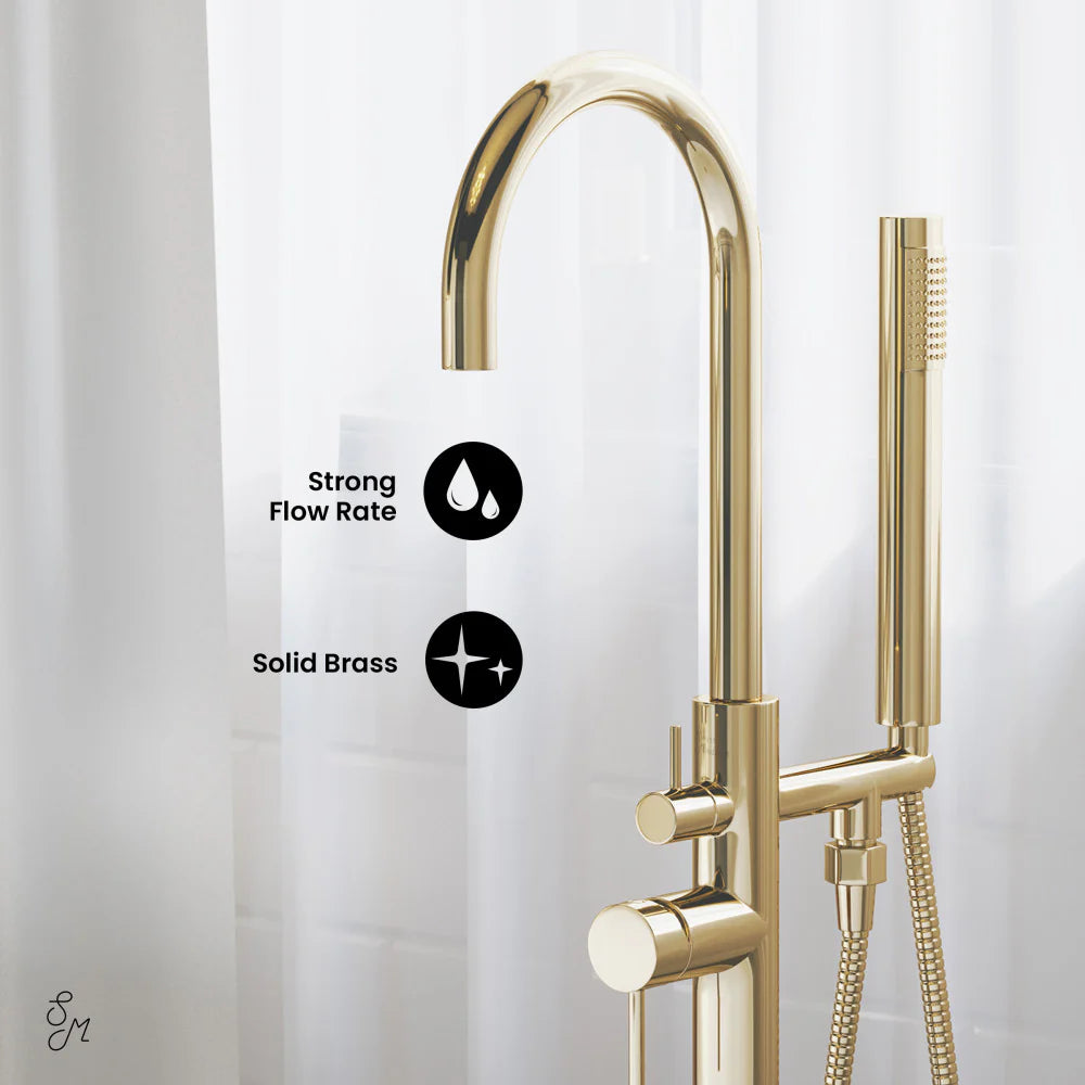 Indoor natural aesthetics flourish with the Ivy collection, where organic, fresh designs harmonize living spaces. Enhance your bathroom with our bathtub faucets that add beauty and functionality to your bathing experience. Offered in brushed gold.
