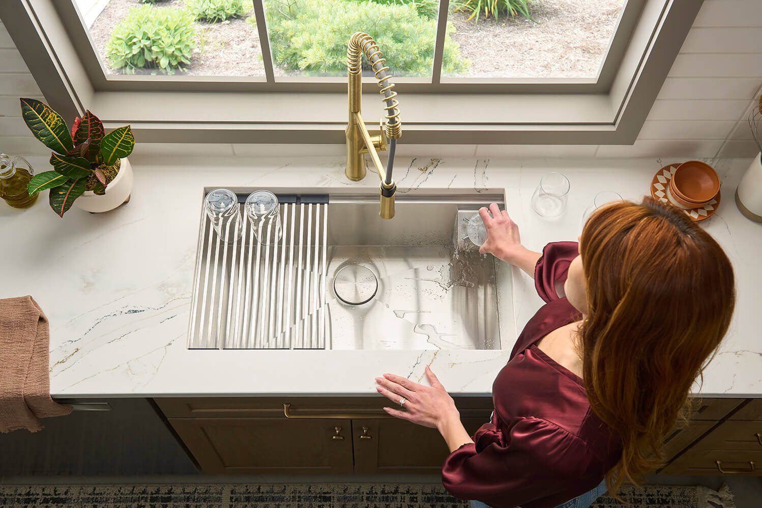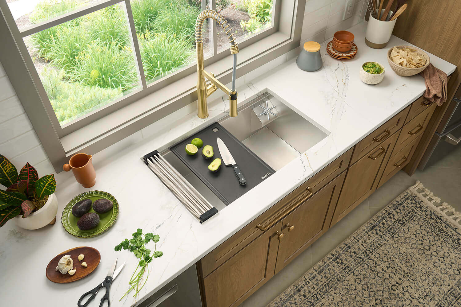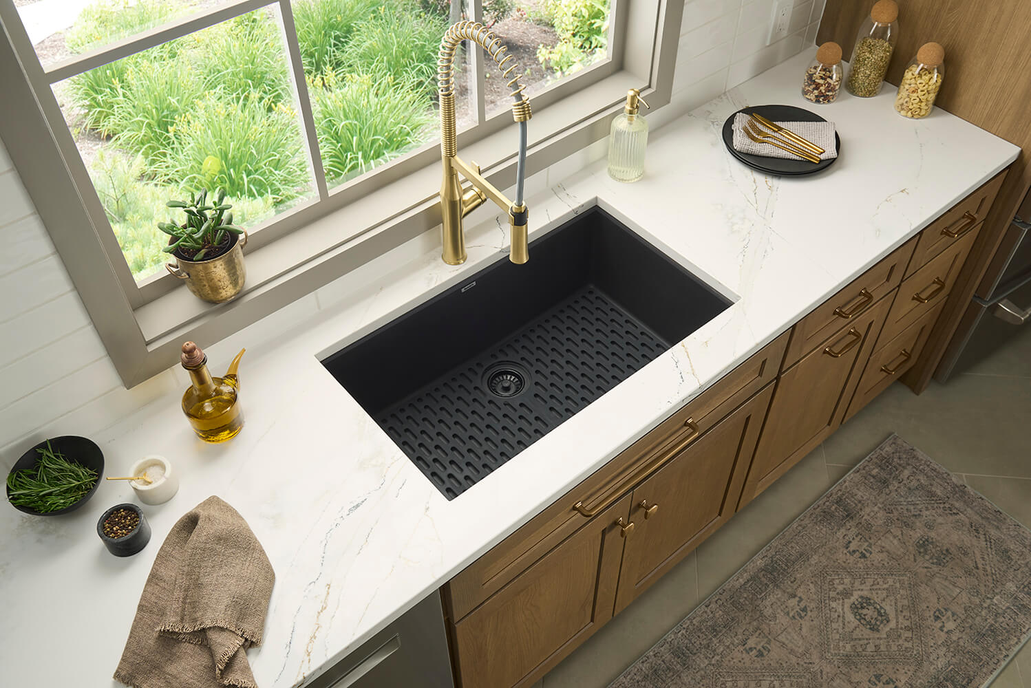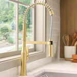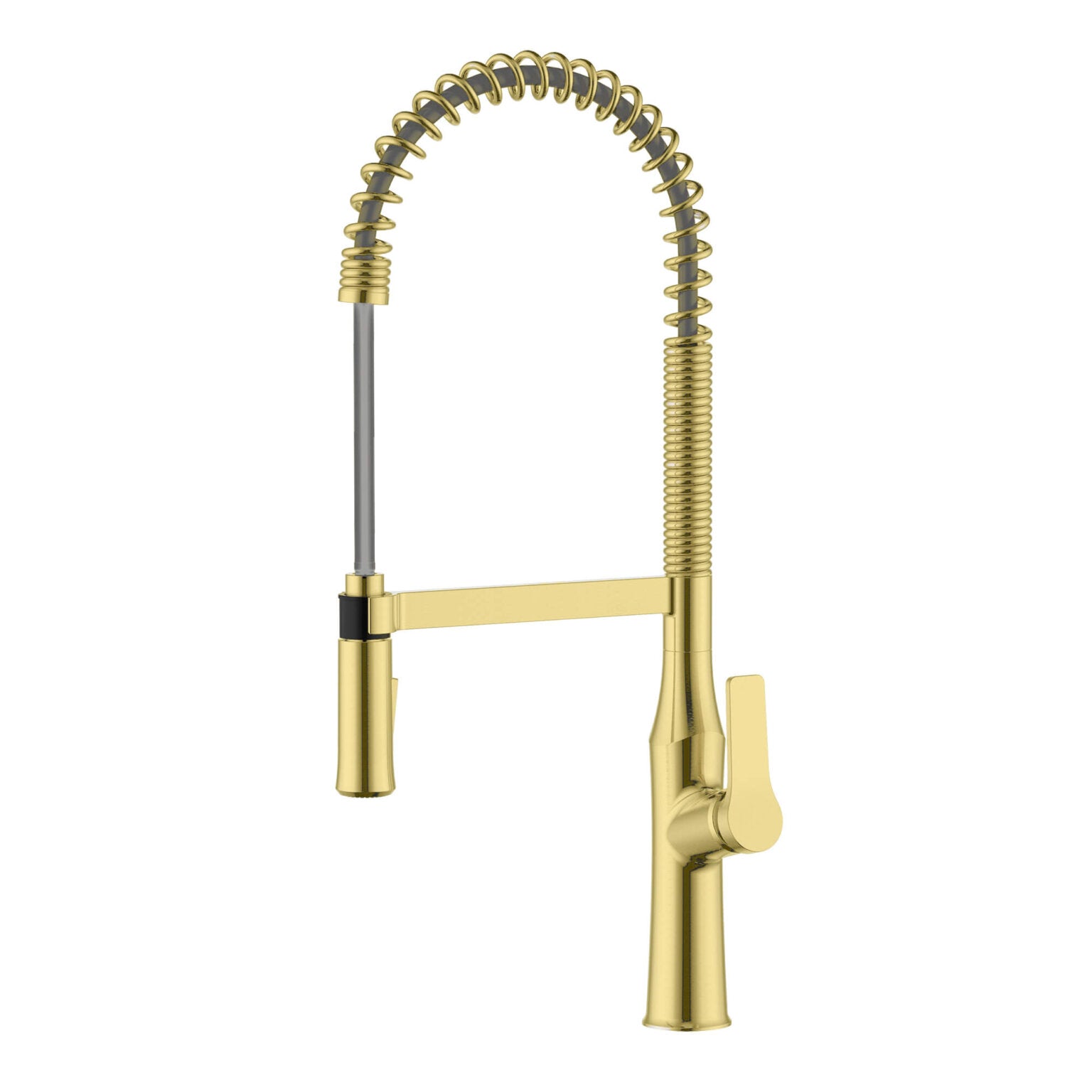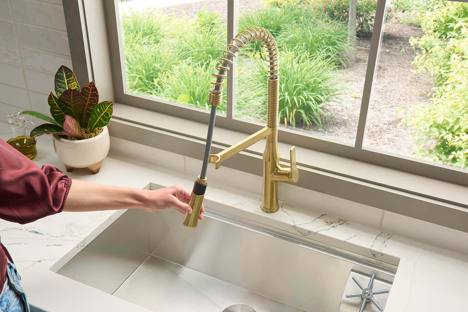 The Seneca Collection of kitchen faucets by Ruvati seamlessly blends contemporary design with innovative functionality. Each faucet features a 20 inch pull-down sprayer for optimal reach and versatility, while the spring-assisted design delivers both industrial style and practicality. Available in brushed nickel, brushed gold, and matte black, these elegant finishes are designed to harmonize with Ruvati sinks and other premium kitchen fixtures. Enhance your kitchen’s aesthetic and functionality with the Seneca Collection, where style meets performance for the modern home.