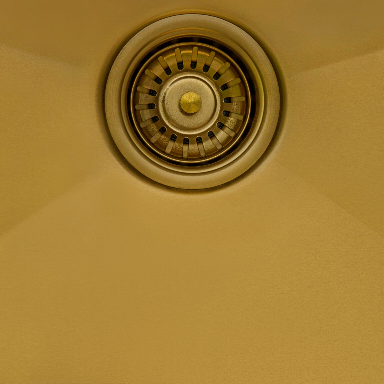 - INCLUDES MATCHING DRAIN: Strainer drain assembly with gold finish – standard 3.5″ drain opening will fit any garbage disposal unit (Matching garbage disposal flange [Model # RVA1041GG] sold separately).