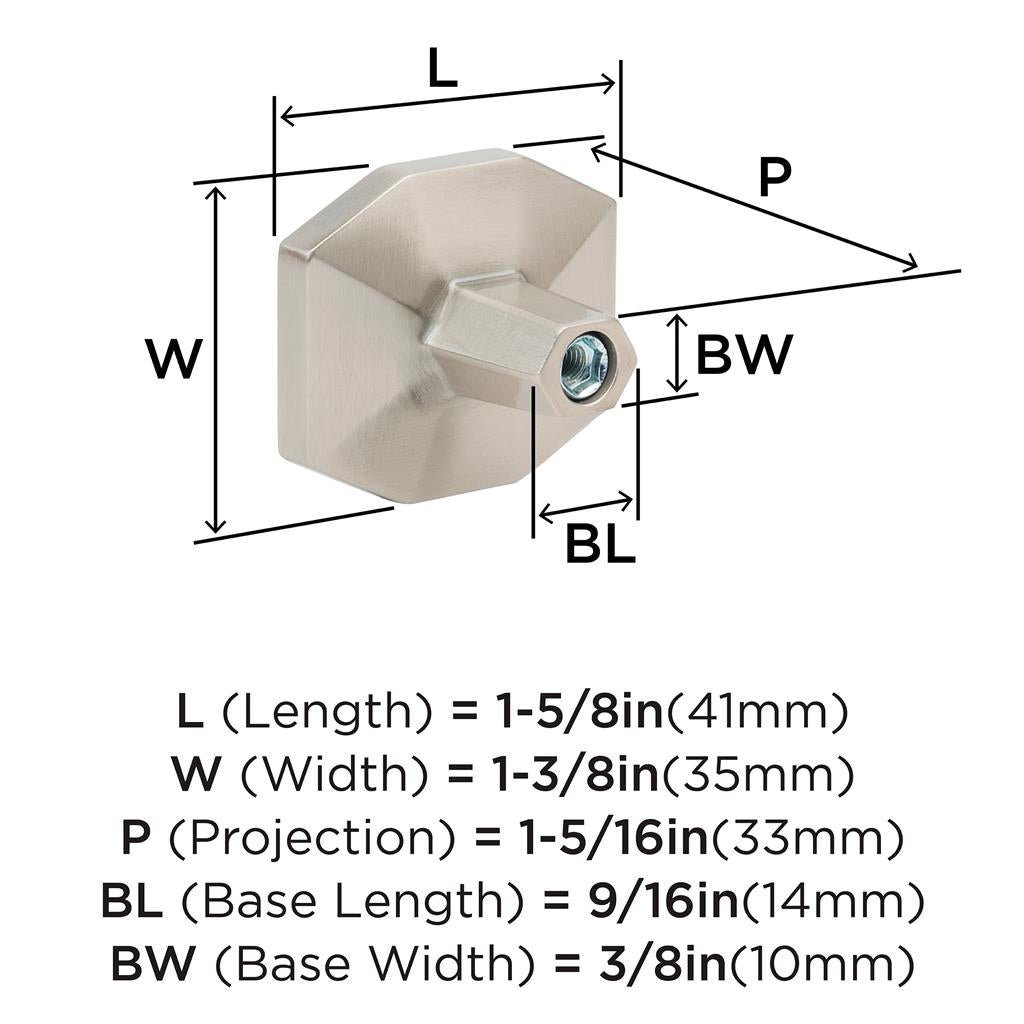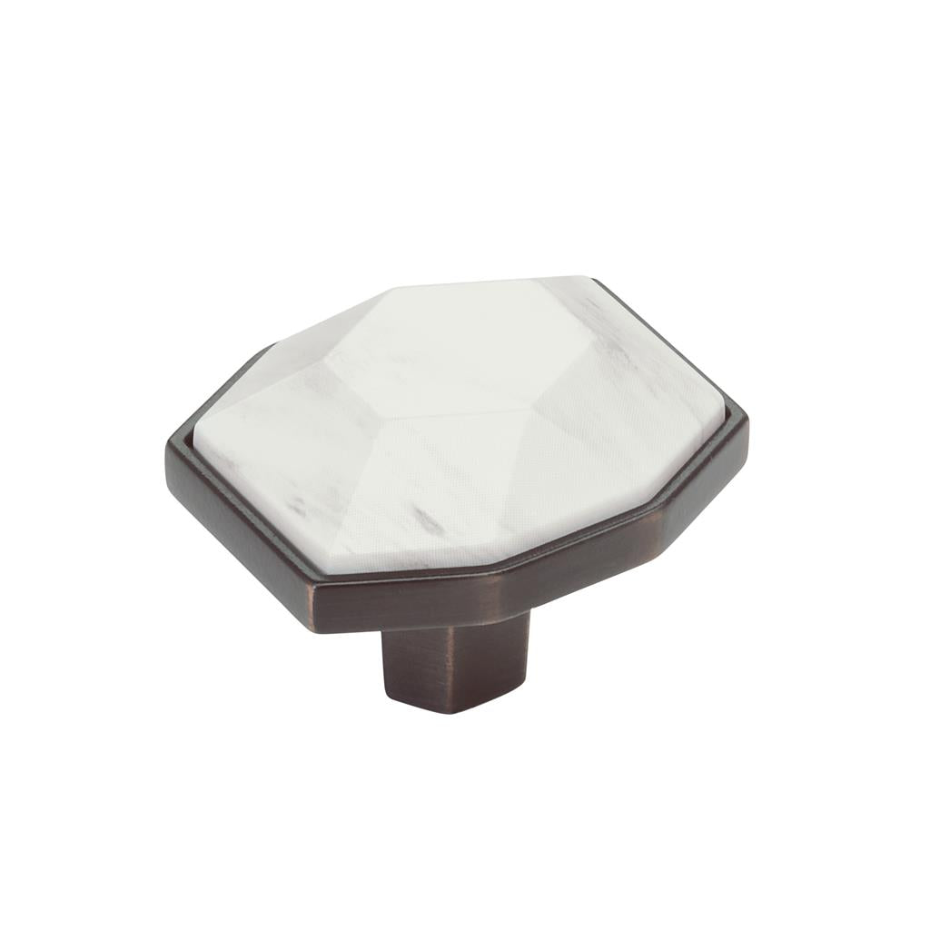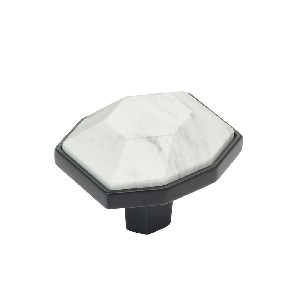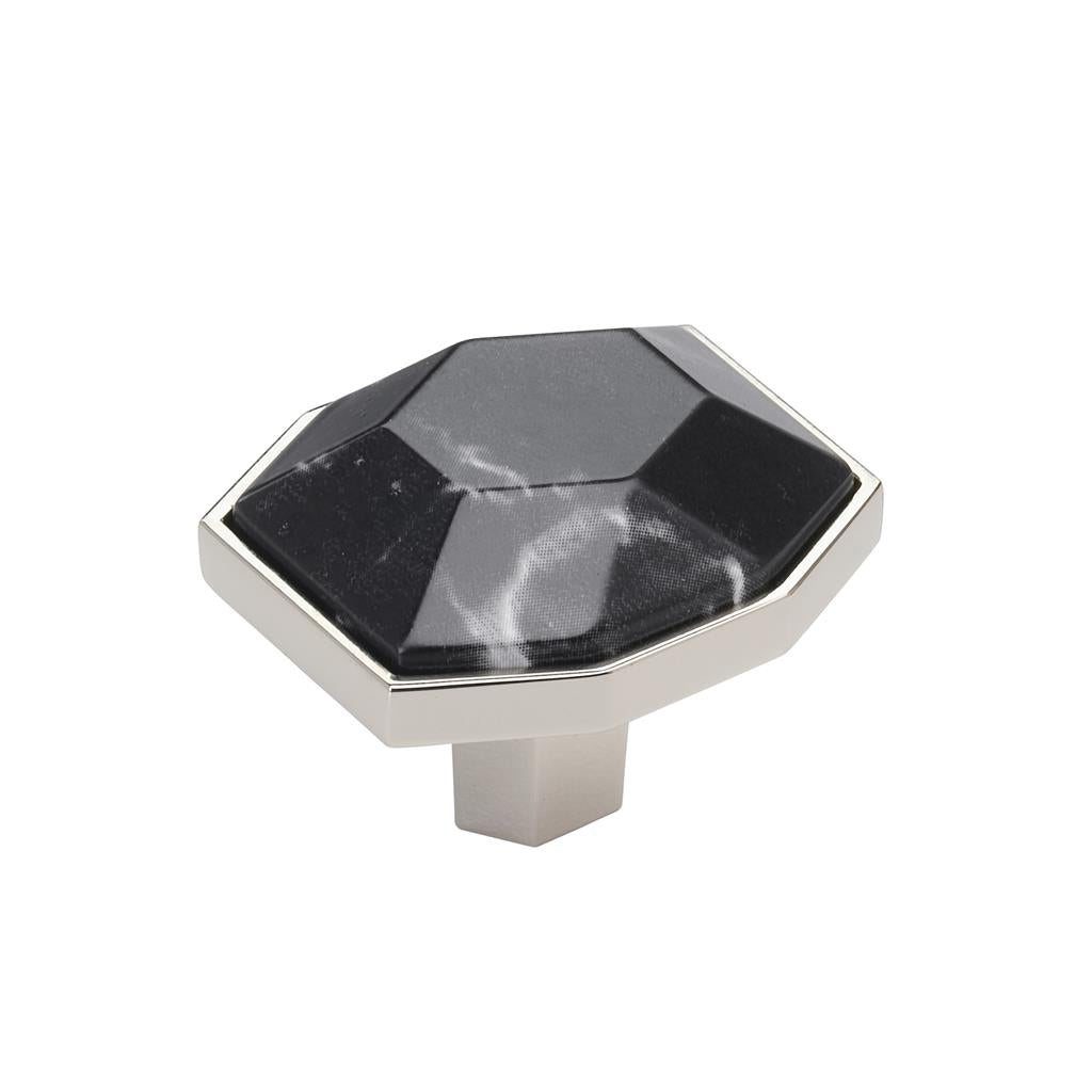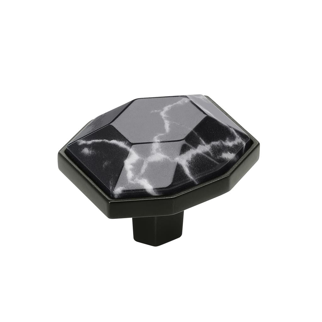 The Amerock BP36638MBKG10 Carrione™ 1-5/8 inch (41mm) Length Knob is finished in Marble Black/Satin Nickel.