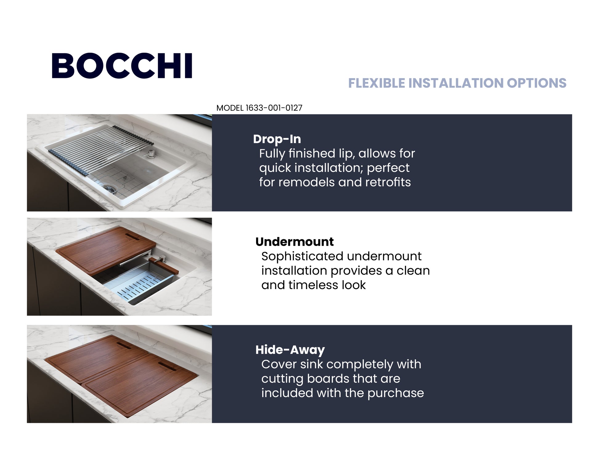 - Dual Installation Option—Choose between Undermount or Drop-In