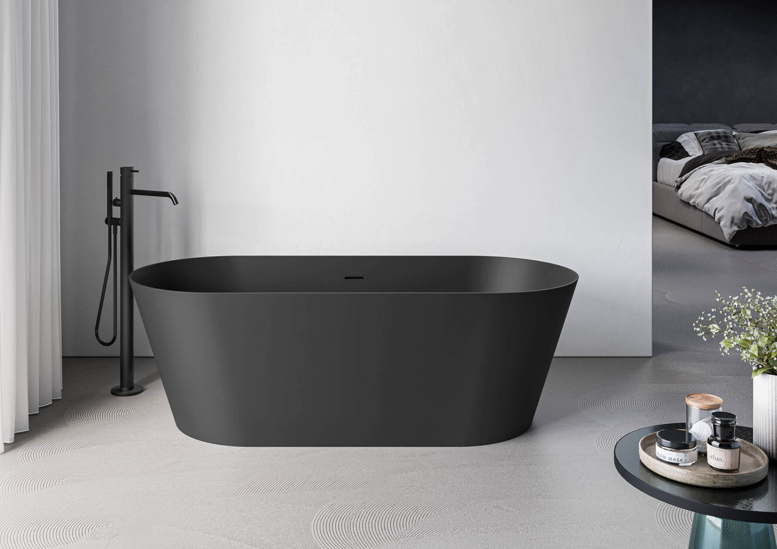 Ruvati 67-inch Black epiStone Solid Surface Oval Freestanding Bath Tub Omnia Matte – RVB6750BK